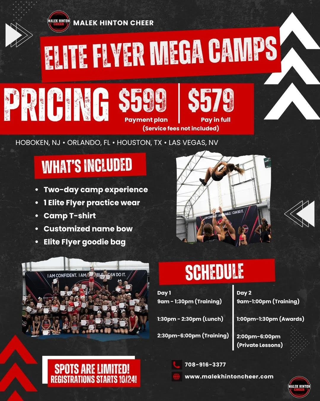 Malek Hinton Cheer maintains a strict no-refund policy for all Elite Flyer Mega Camp registrations due to limited availability and advance operational commitments.